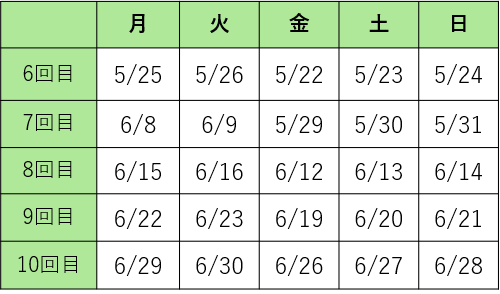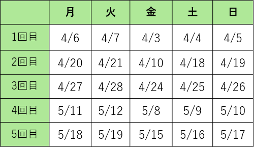 期間中、同プロの他日程へ振替できます、フロントまで連絡ください